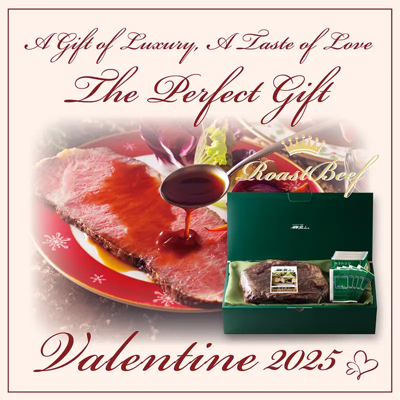 愛を伝える贅沢な味わい 鎌倉山ローストビーフ。 厳選された黒毛和牛の旨みと柔らかな食感が、 バレンタインを贅沢なひとときへ演出します。 高級感あふれる化粧箱に包まれた逸品は、 大切な方への愛を伝えるギフトに最適です。 今年のバレンタインは、 鎌倉山ローストビーフで 贅沢なひとときを心に刻む贈り物を。 |